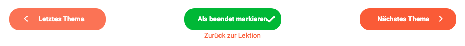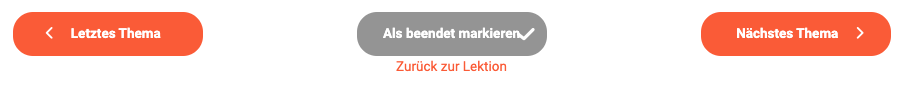 Bei Themenseiten mit interaktiven Übungen musst du allerdings alle Übungen auf der Seite abschliessen, bevor du die Seite als beendet markieren darfst. Solange du nicht alle Übungen gemacht hast, erscheint die Schaltfläche “grau” und kann nicht gedrückt werden, so wie hier: